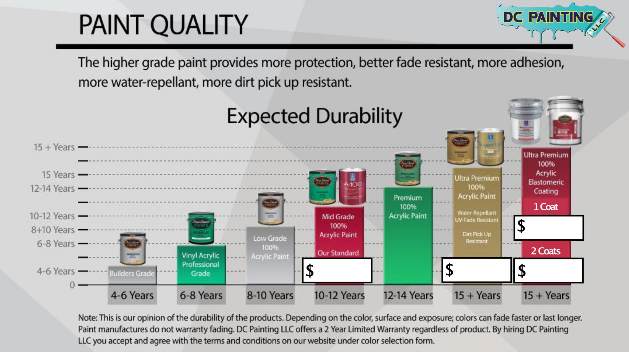 COLOR SELECTION FORM Get An Online Estimate Or Call: (702) 3794009 COLOR SELECTION FORM Please enable JavaScript in your browser to complete this form.Main Body: *(Click for description) Main Body This is the principal color or what the majority of the walls will be painted with. This color is also the same for the overhang/eaves is you have a wood fascia board. Fascia Board/Trim: *(Click for description) Fascia Board/Trim This is the area around the roof. Some houses have a wood trim that will be painted by brush and roll, including a 2-inch edge on the bottom. Other homes have a stucco trim that will be painted a secondary color but some product as the body/main. Popout: *(Click for description) Popout This is the secondary color usually around the windows, the bottom of columns, or other areas that (pop out). Garage Doors: *(Click for description) Garage Doors Garage door and garage door trim will be painted the same color. This can be painted the body color (if you want to hide it or if you have pop out around it); or another secondary/third color. It depends on the HOA (if any) or personal choice. Front Door: *(Click for description) Front Door Front door and door trim will be painted the same color. If the door has a wood finish and doesn’t want to paint it, please write (don’t paint); or insert the new color to paint it. Side Gate:(Click for description) Side Gate: We only included main side gate unless specified differently on your estimate. Shutters:(Click for description) Shutters Some homes have a decorative wood shutter next to windows. If your house does not have any please write (N/A) Front Iron:(Click for description) Front Iron Some homes have an iron on the front porch, decorative iron or front deck iron. If your house does not have any please write (N/A) Other:(Click for description) Other Please write other special indications not covered by the items above that are specified or included on your estimate. Example: perimeter walls, back doors, side doors, etc... Garage Floor Epoxy Coating (Add-On)Choose OneNo, thank you2 Car Garage up to 400sqft (1 solid color). $4992 Car Garage up to 400sqft (with flakes and sealer). $6993 Car Garage up to 600sqft (1 solid color). $8493 Car Garage up to 600sqft (with flakes and sealer). $1049(discounted price will be added to final invoice when combined with exterior painting)Learn More About Epoxy CoatingCUSTOMER INFORMATIONName: *Phone Number: *Email *AddressAddress Line 1Address Line 2CityAlabamaAlaskaArizonaArkansasCaliforniaColoradoConnecticutDelawareDistrict of ColumbiaFloridaGeorgiaHawaiiIdahoIllinoisIndianaIowaKansasKentuckyLouisianaMaineMarylandMassachusettsMichiganMinnesotaMississippiMissouriMontanaNebraskaNevadaNew HampshireNew JerseyNew MexicoNew YorkNorth CarolinaNorth DakotaOhioOklahomaOregonPennsylvaniaRhode IslandSouth CarolinaSouth DakotaTennesseeTexasUtahVermontVirginiaWashingtonWest VirginiaWisconsinWyomingStateZip CodeEstimate Number: *(Click for description) Estimate Number This is the number on the top right hand of your estimate. Don’t write the estimate amount. Schedule Start Date: *DateTimeProduct Chosen: *Choose One PleaseStandard Dunn Edwards AcrihuesStandard Sherwin William A100Ultra Premium Dunn Edwards EvershieldUltra Premium Sherwin William Super Paint1 Coat Dunn Edwards Enduralastic101 Coat Sherwin William Sherlastic2 Coat Dunn Edwards Enduralastic102 Coat Sherwin William Sherlastic(see estimate for additional cost) (Click for description) Product Chosen See your estimate for the different cost to upgrade (only if you decide to upgrade). Standard paint will last about 10-12 years (depending on color). Ultra Premium paint will last around +15 years (depending on color) and provide water repellant, dirt pick up resistant, superior UV Fade Resistant. Note: Only elastomeric coating will bridge the cracks, you can choose a 1 coat or 2 coat for maximum protection, flexibility, elongation and waterproof coating. Estimate Amount: *(Click for description) Estimate Amount Please see the estimate and make sure you add the upgrade cost (only if you decide to upgrade). There’s a 5% credit card fee and a 5% cash discount (please call for more information). Additional Comments:Terms & Conditions *I agreeBy submitting this form, you are agreeing to DC Painting LLC's terms & conditions. To review the terms & conditions, click hereEmailSubmit Contact Us! Name Email Address Phone Address Service ServiceResidential Painting ServiceCommercial Painting ServiceHOA Painting Service Job Description Send Request